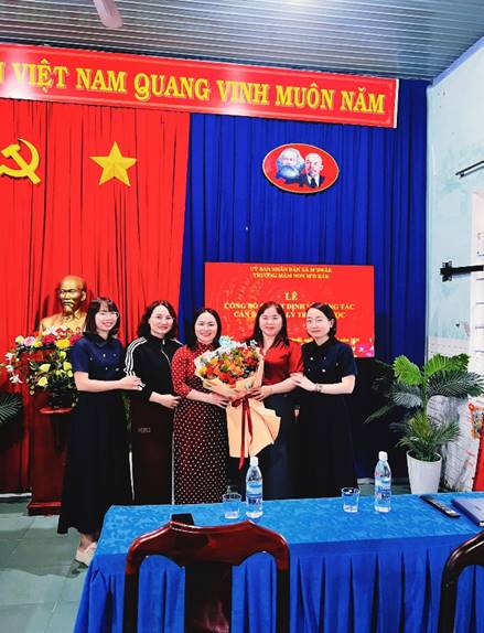 Phát biểu giao nhiệm vụ, đ/c Nguyễn Thị Xinh – Bí thư Chi bộ, Hiệu trưởng nhà trường ghi nhận những đóng góp của đồng chí Vũ Thị Đào trong thời gian qua, đồng thời tin tưởng rằng trên cương vị mới, đồng chí sẽ tiếp tục phát huy năng lực, tinh thần trách nhiệm, cùng tập thể nhà trường xây dựng Trường Mầm non M’Drắk ngày càng phát triển, hoàn thành tốt nhiệm vụ năm học.