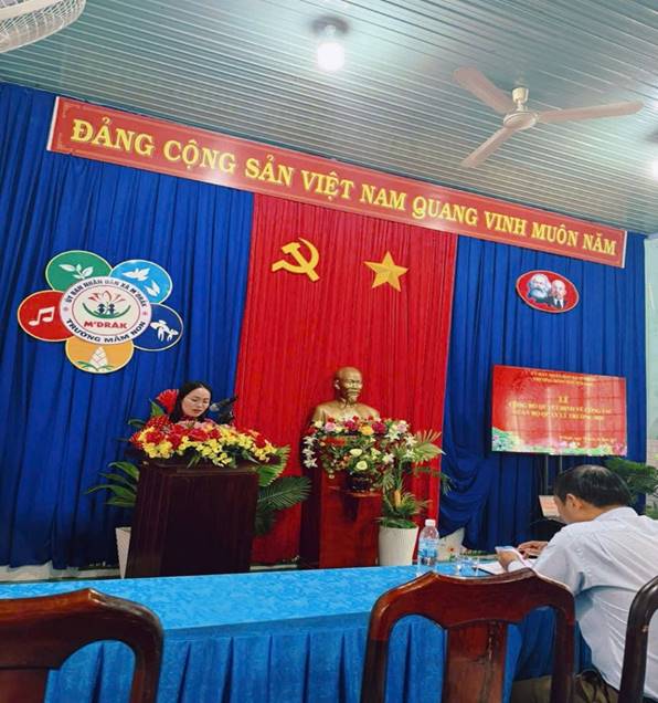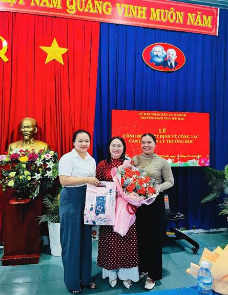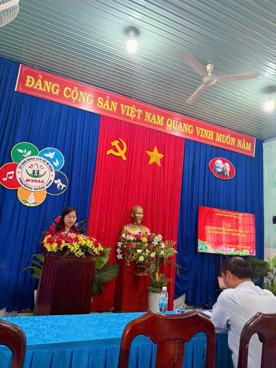 Tại buổi lễ, đại diện Lãnh đạo UBND xã đã công bố Quyết định về việc bổ nhiệm đồng chí Vũ Thị Đào giữ chức vụ Phó Hiệu trưởng Trường Mầm non M’Drắk kể từ ngày 10/01/2026.