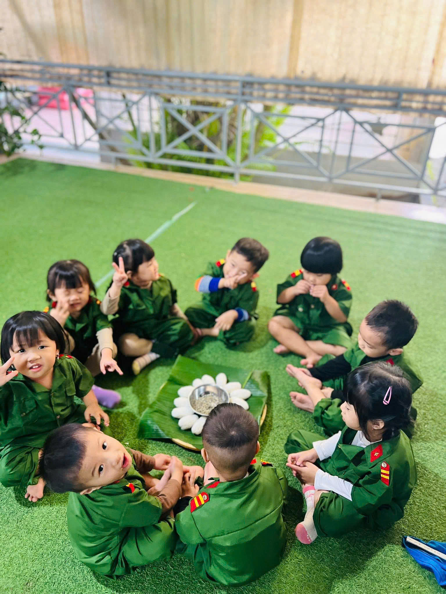 Từ những nội dung đã được học trên lớp, nhà trường tiếp tục tổ chức hoạt động trải nghiệm nhằm đưa kiến thức vào thực tế, giúp trẻ được quan sát, cảm nhận và tham gia một cách trực tiếp. Trong các hoạt động trải nghiệm, trẻ được tham gia những trò chơi rèn luyện, thực hành nề nếp kỷ luật, phối hợp cùng bạn bè và cùng nhau hoàn thành nhiệm vụ trong vai trò “Chú bộ đội tí hon”.