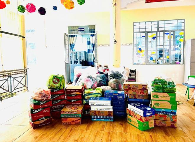 * Gạo, mì tôm, sữa, nước lọc, thuốc, nhu yếu phẩm hỗ trợ sinh hoạt hằng ngày.